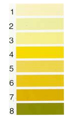 El presente cuadro muestra una escala de colores de la orina del 1 al 8 según la intensidad del color de la orina. Lo ideal es encontrarse entre los niveles 1 y 3, pues ya a partir del nivel 4 hay deshidratación, por lo tanto, debe aumentarse el consumo de líquidos.