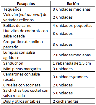 La mejor recomendación en el consumo de pasapalos es cuidar la ración, cada pasapalos según sus ingredientes, método de cocción y tamaño tiene una ración recomendada distinta.