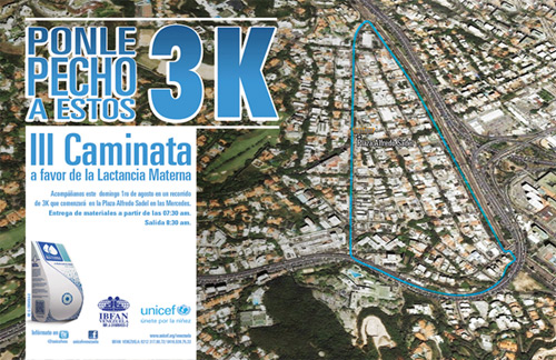 Para iniciar la celebración de la Semana Mundial de promoción de la lactancia materna el IBFAN, la Red Mundial de Grupos Pro Alimentación Infantil capítulo Venezuela, organizan la III caminata a favor de la lactancia materna. Este año cuentan con el apoyo de Unicef, juntos invitan a participar a toda la familia en apoyo al manantial de la vida: la leche materna.
