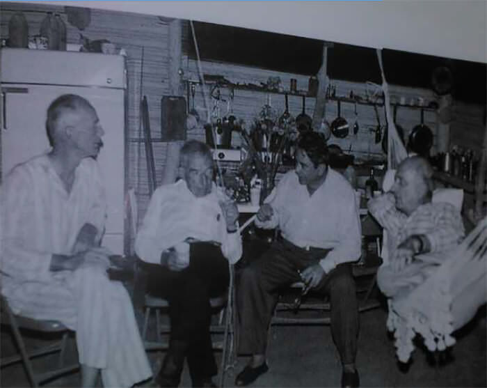 Y aquí están sentados, Guillermo Hernández Zozaya y Gustavo Machado, juntos con su maestro, esa persona que ustedes ven con cara de bravo, es nada más y nada menos que el gran profesor de anatomía Pepe Izquierdo; de pie están Martín Vegas el segundo y José Ignacio Baldó el sexto. En la foto parecen más jóvenes, estaban empezando el primer año de medicina, con sus batas blancas impecables, así es que disecaban los cadáveres en esa época. Este gran médico Hernández Zozaya, una de sus obras silenciosas, fue la consulta gratuita a los habitantes de los barrios cercanos a su casa, durante 45 años; la placa que está en el Ambulatorio del Pedregal dice: "En reconocimiento a este caritativo médico, que dio asistencia gratuita a adultos, jóvenes y niños de los sectores populares del Pedregal, Bucaral, el Tártaro y Barrio Nuevo durante 45 años".