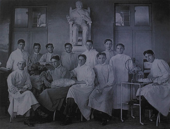 Una foto muy curiosa, es la clase de anatomía de la escuela de San Lorenzo, la cual quedaba muy cerca de lo que es actualmente el Hospital Vargas.