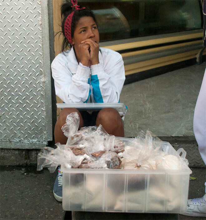 La nutricionista aseguró que las bolsas donde empacan la mercancía no son aptas para tal fin y que en oportunidades las soplan para inflarlas, acción que le traspasa las bacterias al plástico donde será colocado el producto o suelen mojar con saliva los dedos para separar los extremos. "Cualquiera de las dos modalidades está contaminando la bolsa con la carga bacteriana que tienen en las mucosas", explicó.