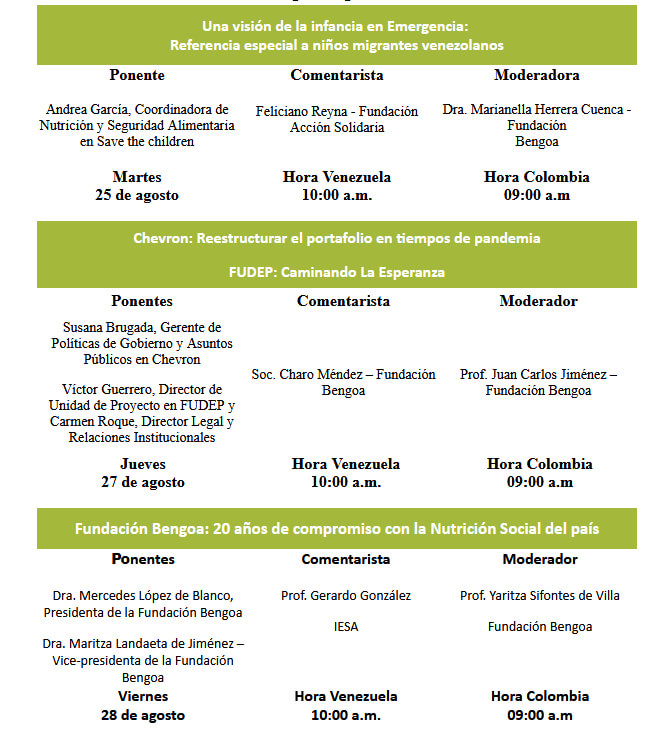 En el marco de nuestro 20 aniversario desarrollando estrategias para contribuir por una mejor nutrición en los niños venezolanos, hemos diseñado para ti el Simposio virtual "Venezuela: perspectivas de un país que lucha por conquistar la sonrisa de sus niños", compuesto por una serie de encuentros virtuales de la mano de nuestros principales aliados.